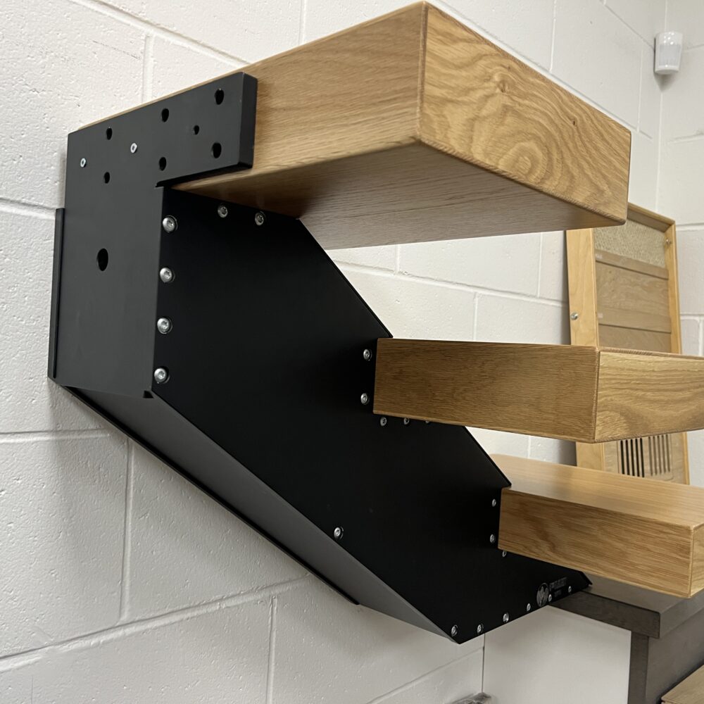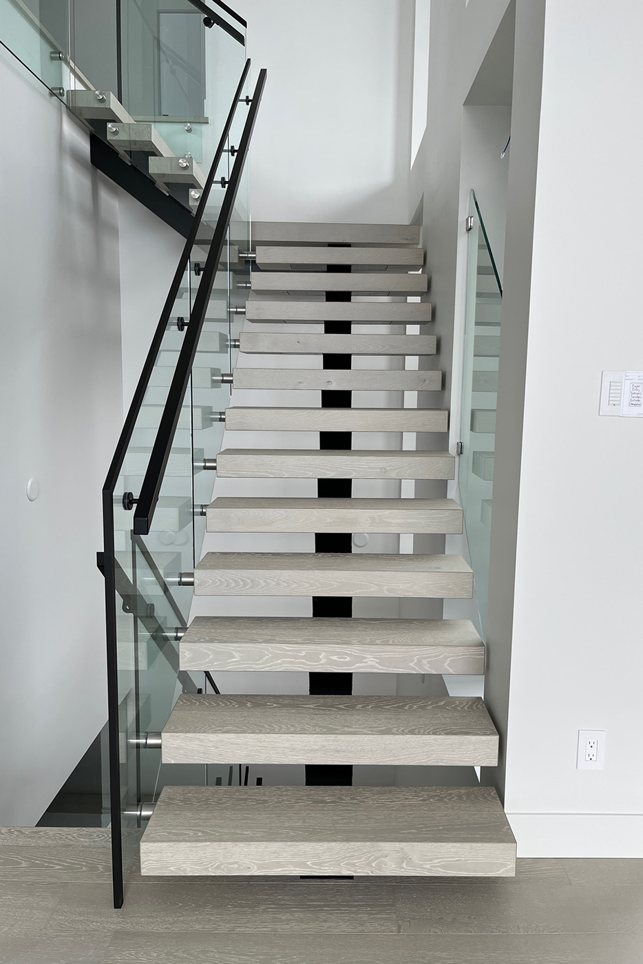 Perfect for custom homes, renovations, and feature staircases, these mono-stringers pair effortlessly with our wrapped hardwood treads, floating stair systems, and premium stair components.